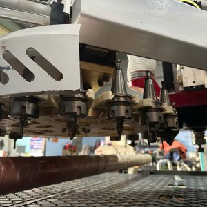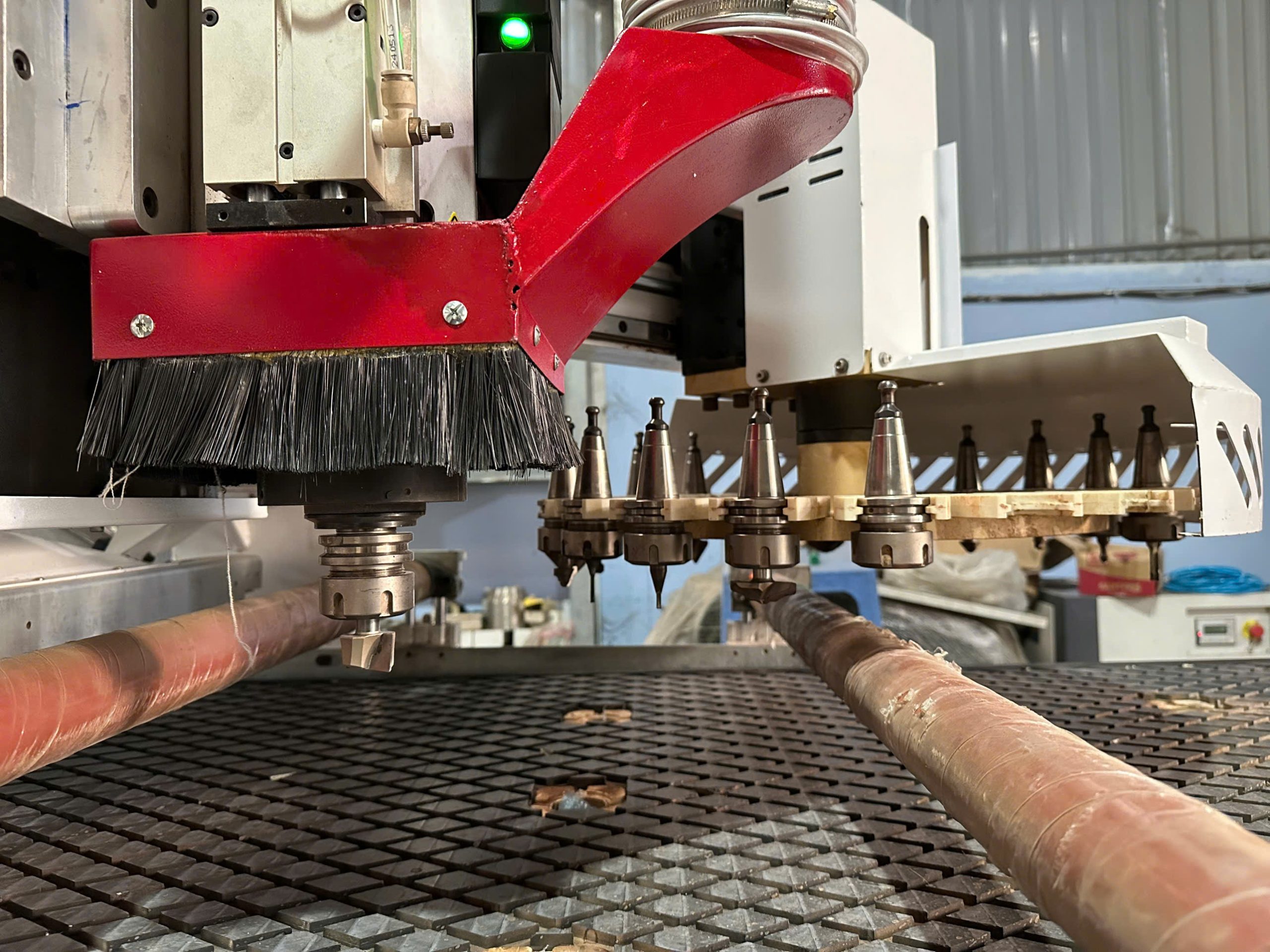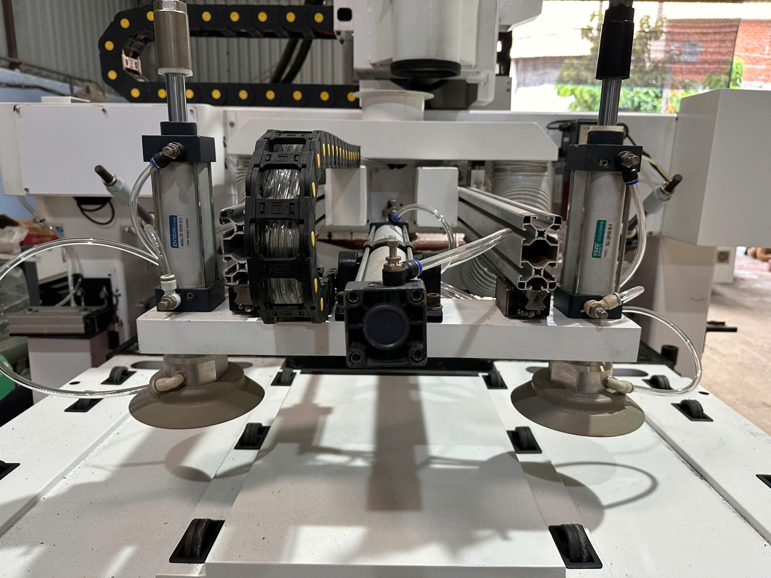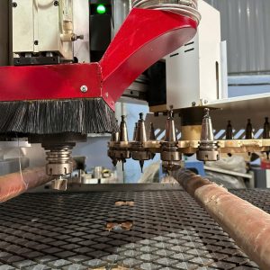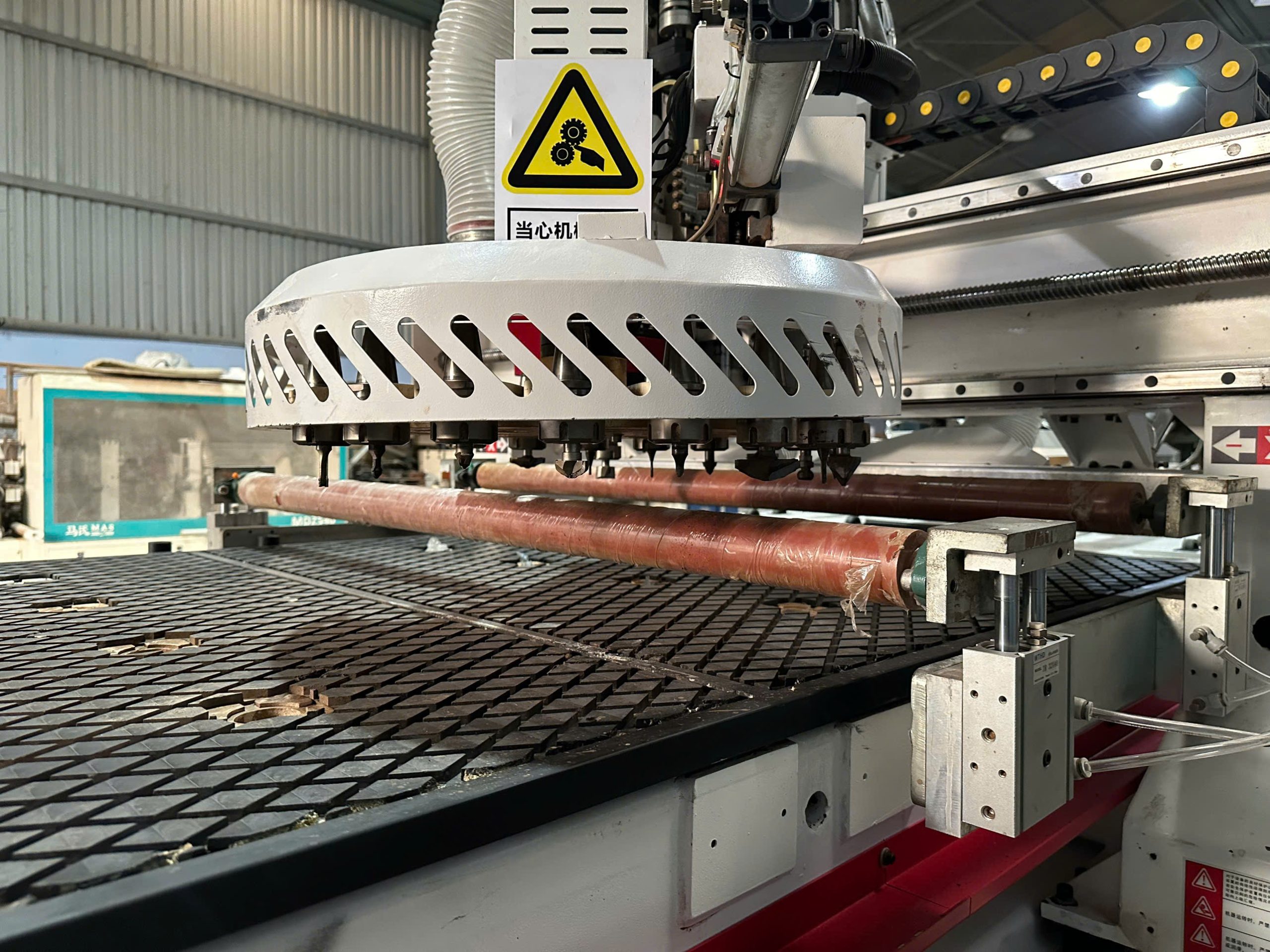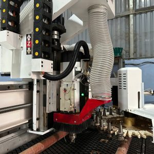Thiết bị tích hợp nhiều chức năng như cắt, phay, khoan và chạy bề mặt, phù hợp với nhu cầu sản xuất đa dạng trong ngành nội thất và làm bảng hiệu quảng cáo.