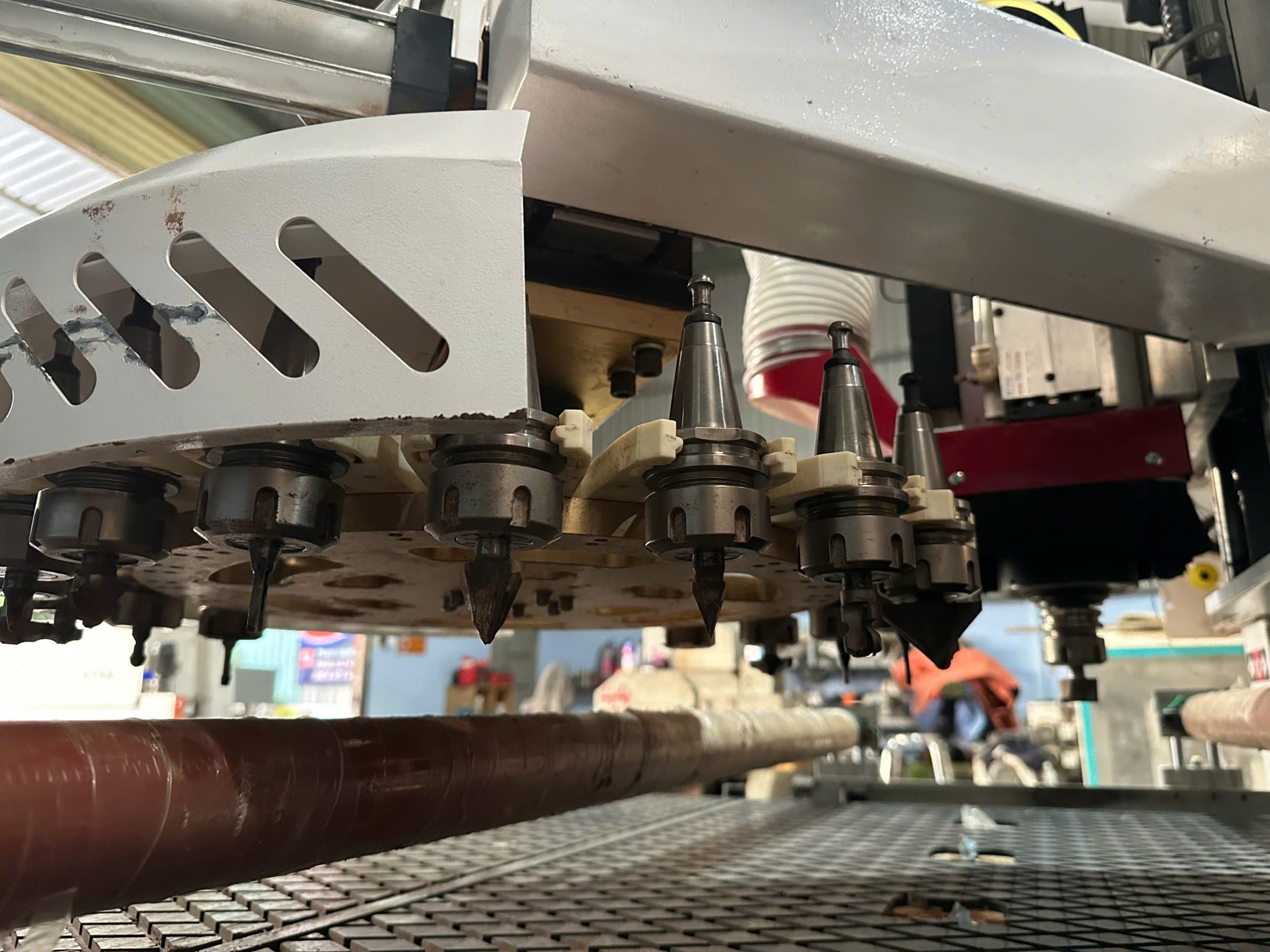 Máy được trang bị hệ thống thay dao tự động, giúp rút ngắn thời gian gia công và nâng cao hiệu suất làm việc tổng thể.